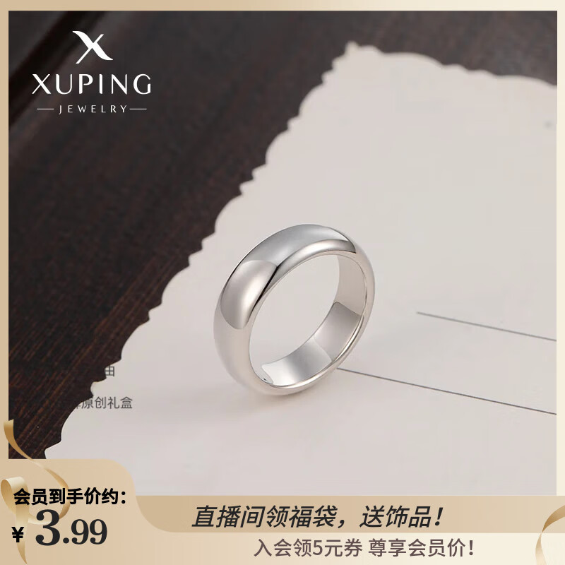 包邮 XUPING旭平首饰气质时尚素圈戒指情侣小众ins风日常通勤简约送女朋友礼物 素圈戒指【7码-窄版约2mm】